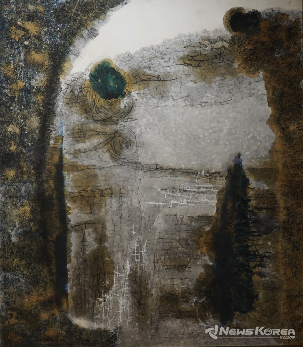 그리고 세 번째 그림은 <해벽海壁>(1967-종이에 채색)이에요.